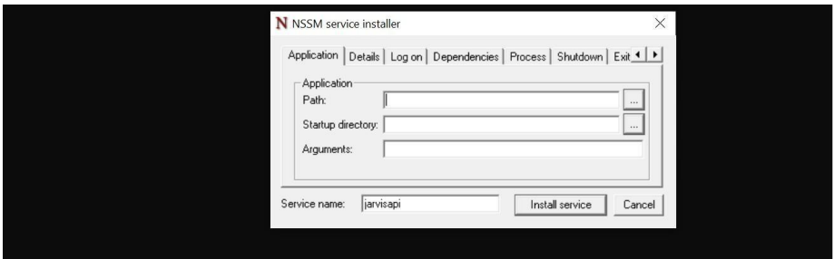 Go to Jarvis folder, select the appdata package location till /appadata.exe in path Select path till in startup directory